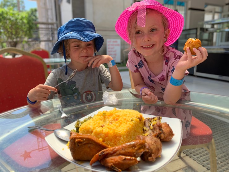 Nous avons récupéré nos sacs, trouvé un ATM et des SIM cards. Et up… nous nous sommes dirigés vers notre guest house, la Summerside residence, pour deux nuits. Chambre très correcte, petite piscine et la proprio qui nous cuisine des cocos le matin!