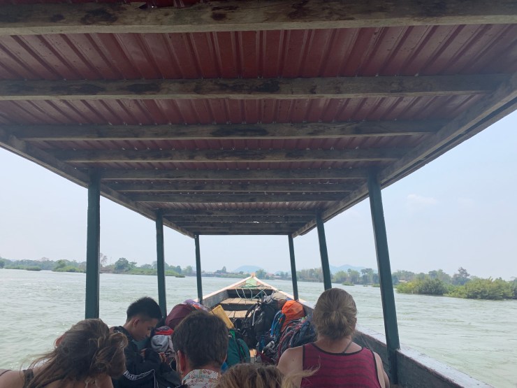 Arrivés au port, nous avons pris un bateau de pêcheurs pour se rendre sur Don Det.