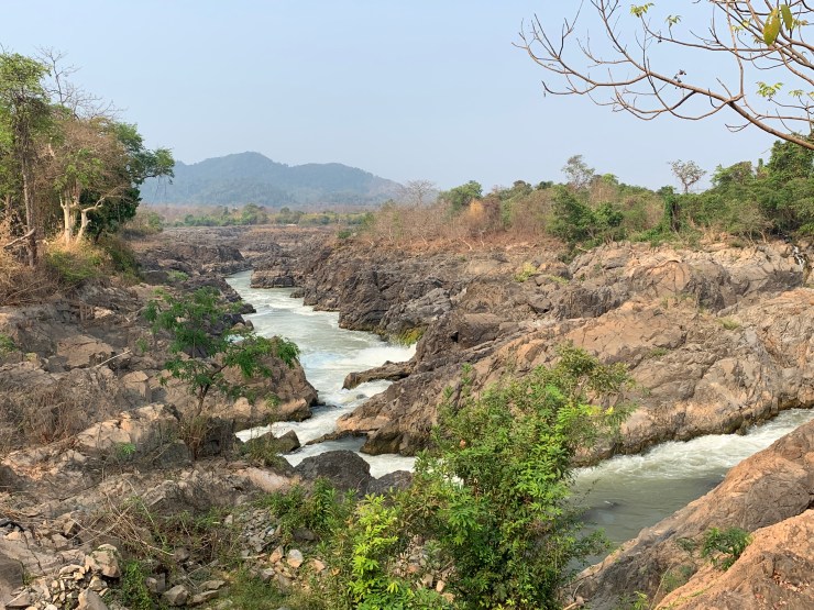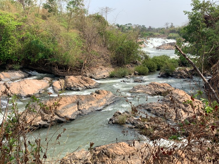 Après 2 jours de repos, nous sommes allées visiter 3 cascades (les small waterfalls, dont Liphi waterfalls) avec Karine/Olivier et leurs enfants Auriane et Morgan. Elles sont sur l’île de Don Khone, reliée à Don Det par un pont…