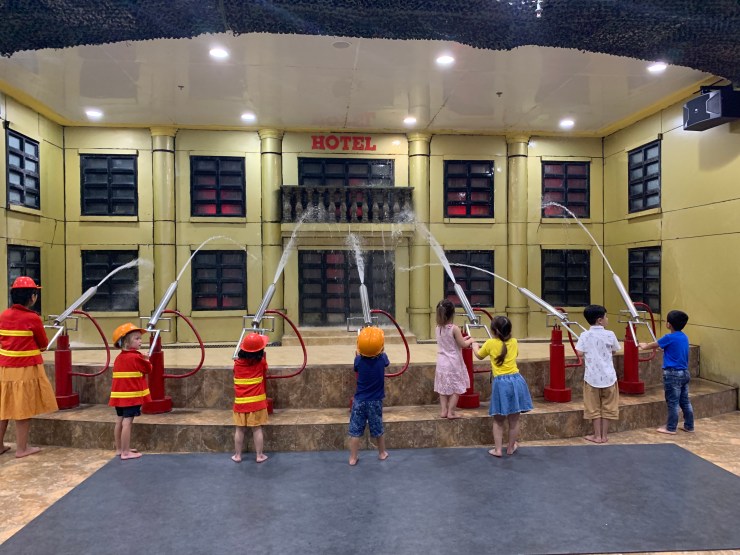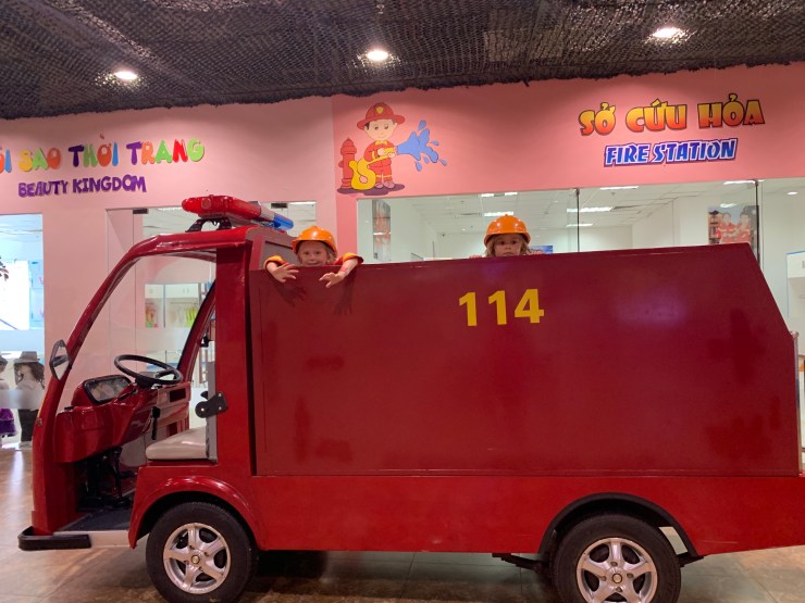 Hugo a magasiné quelques trucs et les enfants ont joué dans un parc intérieur. La Fire Station fut un gros hit : le camion se déplace et amène les enfants éteindre un feu…