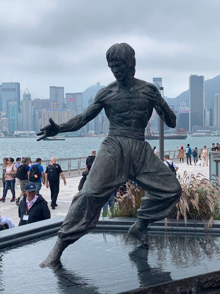 Nous avons fait une promenade sur l’Avenue des stars oĂč l’on peur voir les empreintes de plusieurs vedettes de cinĂ©ma chinoises et une statue de Bruce Lee. Ce fut aussi un bel endroit pour admirer la Skyline.