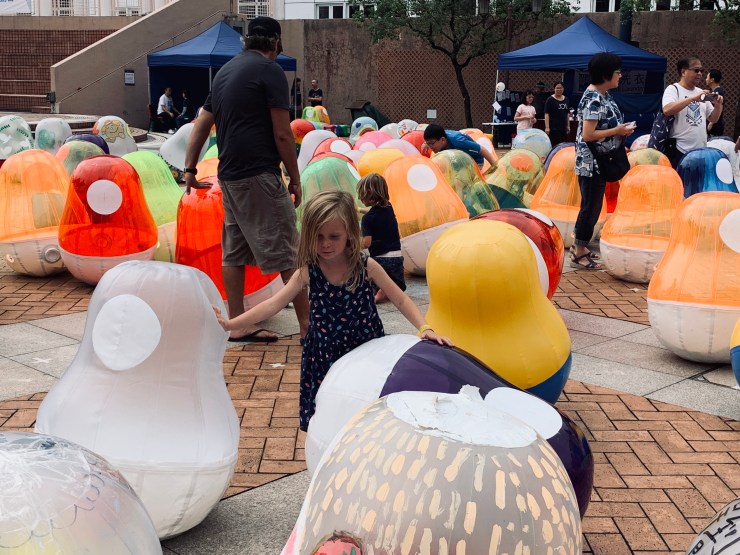 Nous avons marchĂ© dans le parc puis, par hasard, les enfants ont pu participer Ă  une activitĂ©/exposition axĂ©e sur les arts. Une bĂ©nĂ©vole nous expliquait que l’organisation lutte, entre autres, contre la pression imposĂ©e aux enfants en trĂšs bas Ăąge (apprentissage de plusieurs langues, sports axĂ©s sur la performance, rendement scolaire, etc.). Maquillages, dĂ©corations, potions magiques, ballons gĂ©ants, etc.