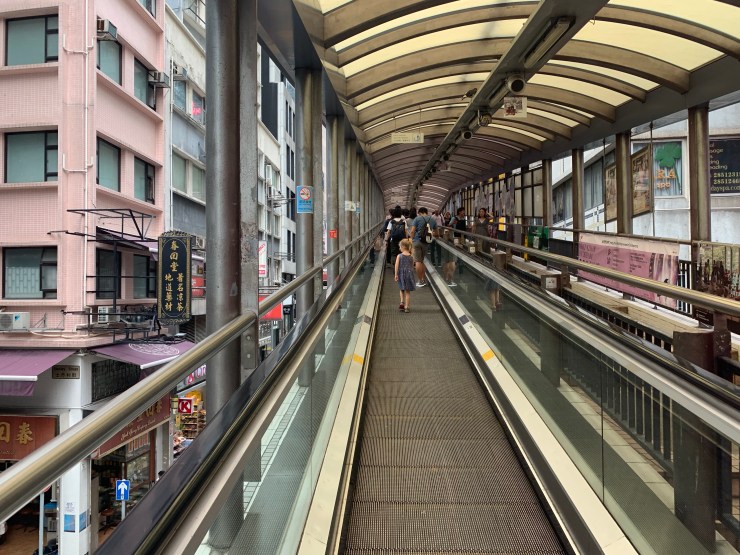 Nous avons pris, pour le plaisir et pour savoir oĂč ça nous mĂšnerait, l’escalier roulant le plus long au monde (0,8 km). Il descend dans la ville de 06h@10h puis monte de 10h@00h. Du gros fun pour les twins!